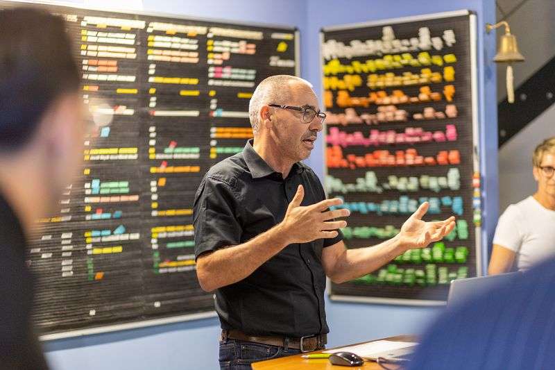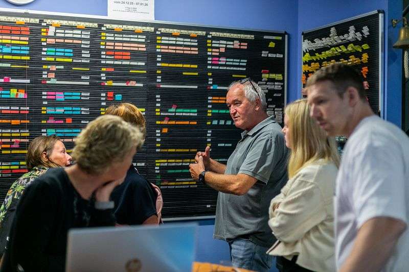 Beim Rundgang durch die Firma präsentierte Frank Oswald sein Unternehmen und gab Einblicke, wie Prozesse klar strukturiert und digitalisiert umgesetzt werden. Unterstützt wurde er dabei von seiner Führungscrew, die authentisch und praxisnah von den jeweiligen Aufgabenbereichen berichtete. Auch Junior Jakob Oswald und Ehefrau Anke Oswald stellten ihre Verantwortlichkeiten und Erfahrungen vor. Viele der anwesenden Partnerbetriebe waren beeindruckt, wie konsequent und durchdacht hier gearbeitet wird. Zahlreiche Nachfragen und Diskussionen machten deutlich, wie groß das Interesse daran ist, diese Ideen in den eigenen Betrieben aufzugreifen.