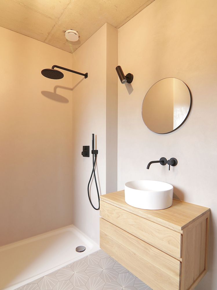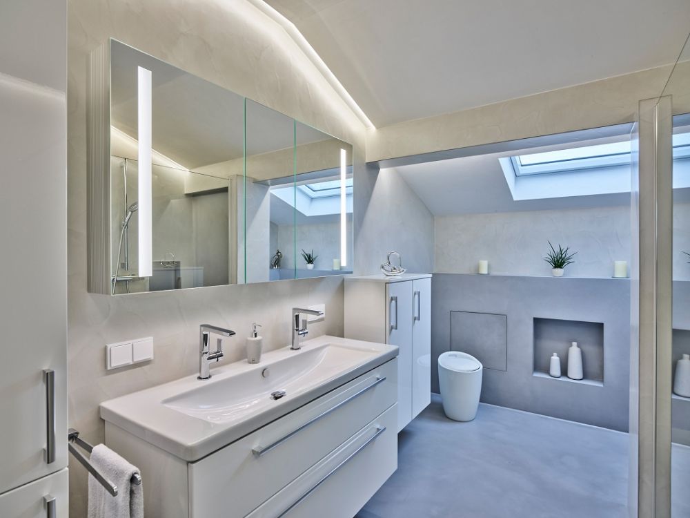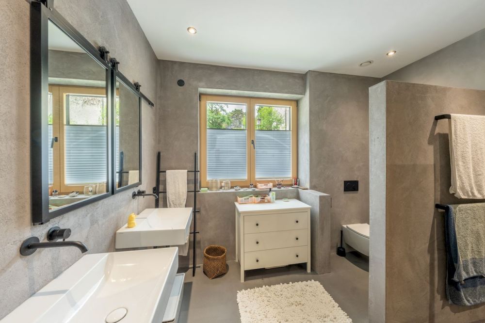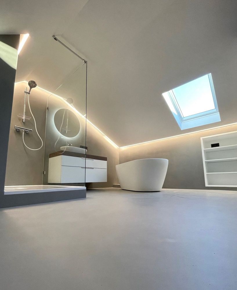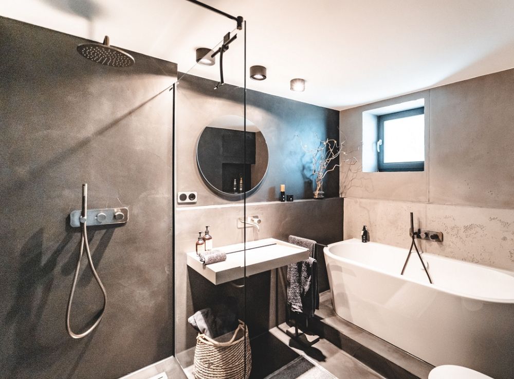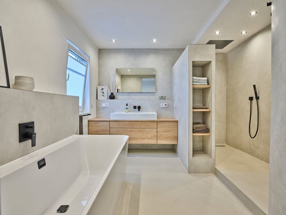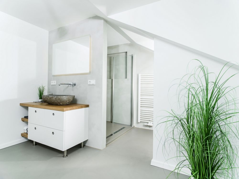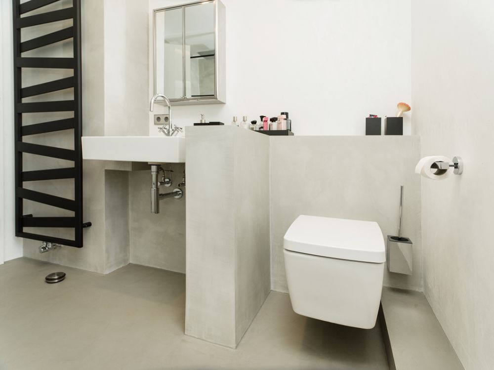 Betonoptik, Loftdesign im fugenlosen Badezimmer