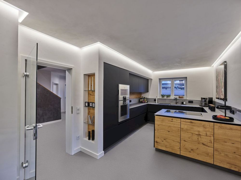 Unsere LED-Trockenbauprofile sorgen für eine gleichmäßige Grundausleuchtung des Raumes und vermeiden harte Kontraste zwischen Licht und Schatten. Das Ergebnis ist eine angenehme und harmonische Atmosphäre, die Ihren Wohnraum in ein Wohlfühlparadies verwandelt. Mit unseren Profilen können Sie geradlinige oder runde Lichtakzente setzen -auch durch das Einbinden stuckähnlicher Designprofile- und dabei stets eine moderne und stilvolle Optik bewahren.
